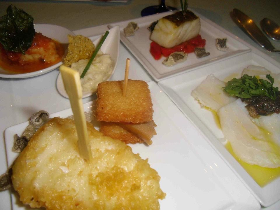 Ma il piatto da dieci e lode l’ho preso io. Detta in sintesi: il piatto che vale il viaggio o, più semplicemente, la spesa. La famosa variazione di baccalà di Agata: la sapidità nature del carpaccio mitigata da un olio dolce e profumato; il classico irrinunciabile del fritto, dalla panatura impeccabile e asciutta del filetto alla sfizioseria del piccolo toast con dentro la bottarga; e ancora, la classicità del guazzetto di pomodoro e basilico – perchè, come si diceva prima, anche la memoria vuole la sua parte – la sontuosità del baccalà mantecato; la robustezza dell’abbinamento del filetto con i peperoni che profumano di orto. E da sgranocchiare, tra un passaggio e l’altro, le croccantissime chips di pelle di baccalà che, come ci insegnano gli islandesi, si mangiano e non si buttano certo via. Un piatto completo, raffinato, con il giusto tributo alla tradizione romanesca ma anche molto moderno ed immediato.