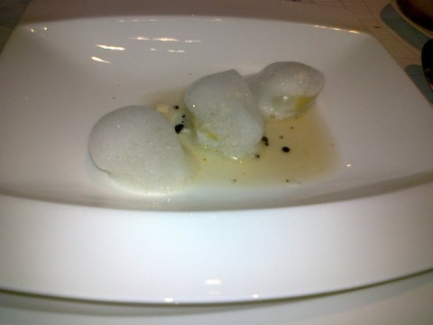 Discorso diverso, invece, per questo raviolo che rivela la solita attenzione alle consistenze ma che è a nostro giudizio eccessivamente voltato verso la dolcezza mentre noi preferiamo sempre il contrasto al foie gras.