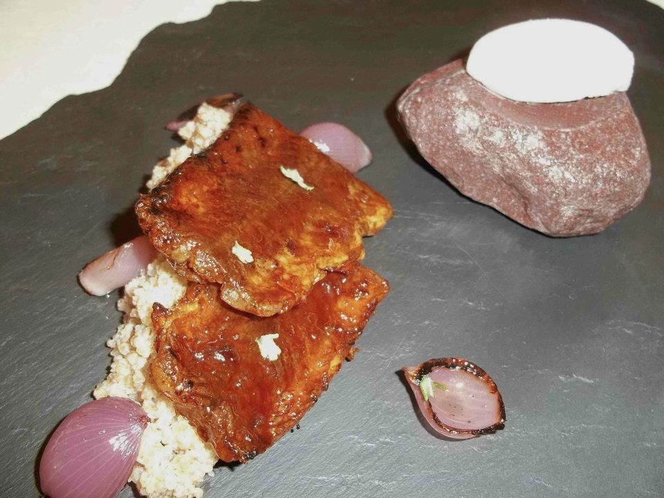 E poi quello che eleggerò mio personalissimo piatto del buonricordo. L’anguilla di Comacchio su farro franto con carpione gelato. Cottura perfetta del pesce, asciugata del grasso ma non della morbidezza e accompagnata dal frumento da un lato e dall’altro dall’idea geniale della marinatura più tradizionale che c’è, il carpione, qui trasformata in gelato.