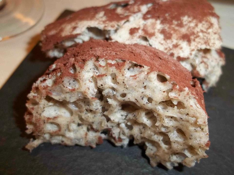 Con l’altro dessert, chiamato Torrefazione 2.0, la « ricerca del equilibrio di tre ingredienti tostati»: caffe, cioccolato e nocciole.