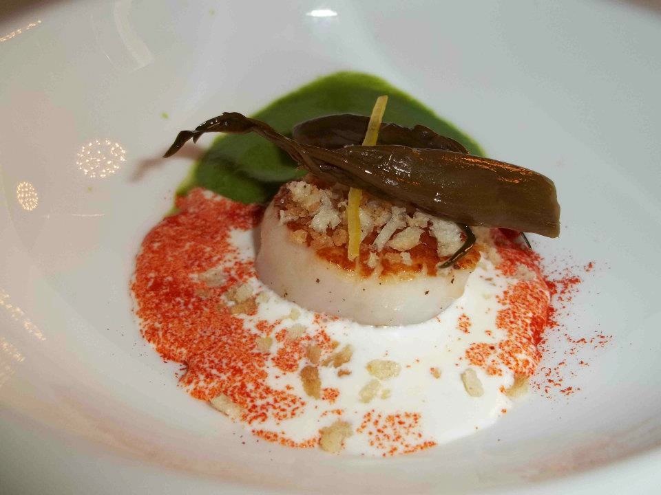 Il piatto successivo è una cappasanta. Qui forse casca l’asino, ho pensato. Avendo in testa l’effetto pallina-di-gomma-insapore dell’80 per cento di questo mollusco al ristorante. Mi ricredo quasi subito. Innanzitutto per il tempo di cottura. Perfetto. Poi per l’abbinamento con la puntarella in agrodolce, la crema di puntarelle, la burrata e la paprica dolce. Ogni sapore distinto e distinguibile senza essere slegato. Non c’è che dire. Queste Saint Jacques sono finite in un bel mare.
