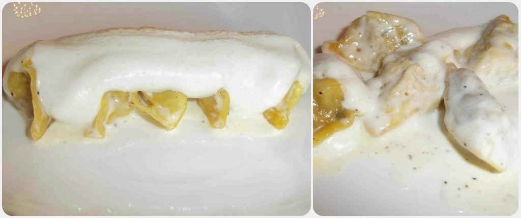i finti “tortellini alla panna”, laconica e piperiana definizione per un piatto, invece, di ricchezza inifinita, lasciano il segno grazie alla felice e golosa combinazione di “agnello, pecorino e menta” così ben descritto da Virginia.