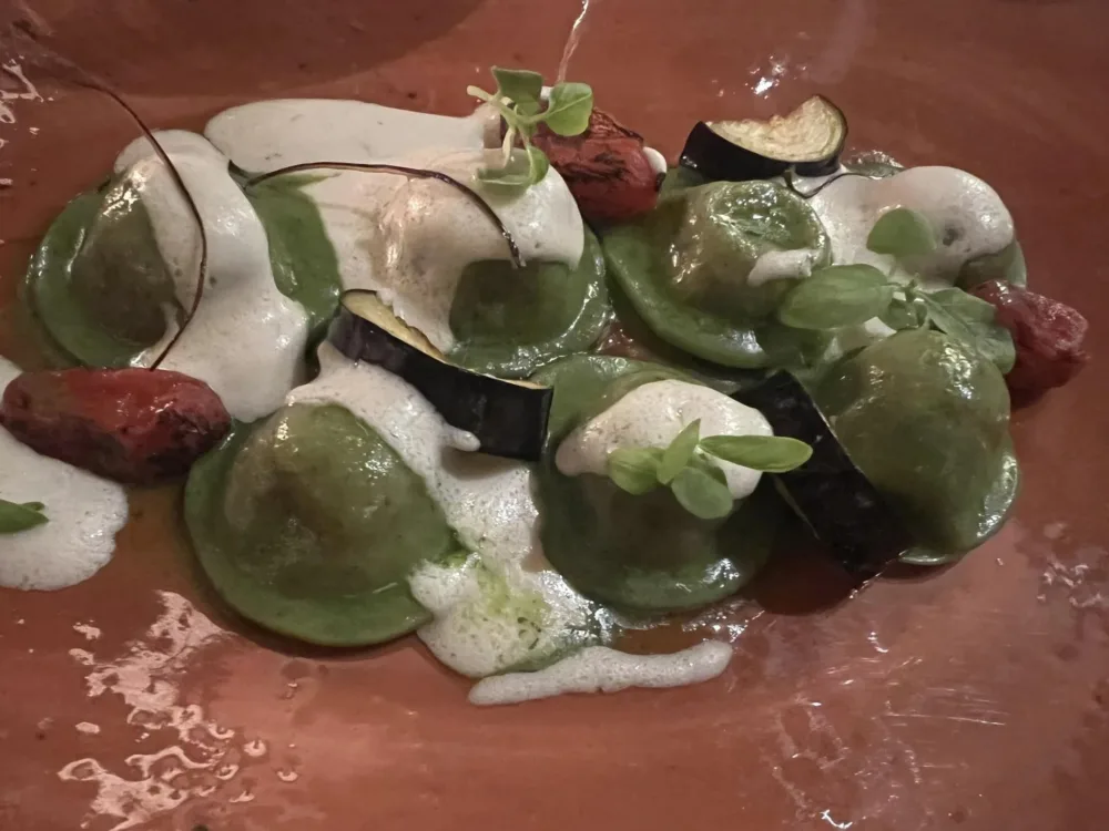 Salone Eva Hotel Hassler, ravioli verdi di melanzana alla parmigiana 7/12/2023 Torna a: Roma, Salone Eva all’Hotel Hassler e la cucina di Marcello Romano Salone Eva Hotel Hassler, ravioli verdi di melanzana alla parmigiana← PrecedenteSuccessiva →