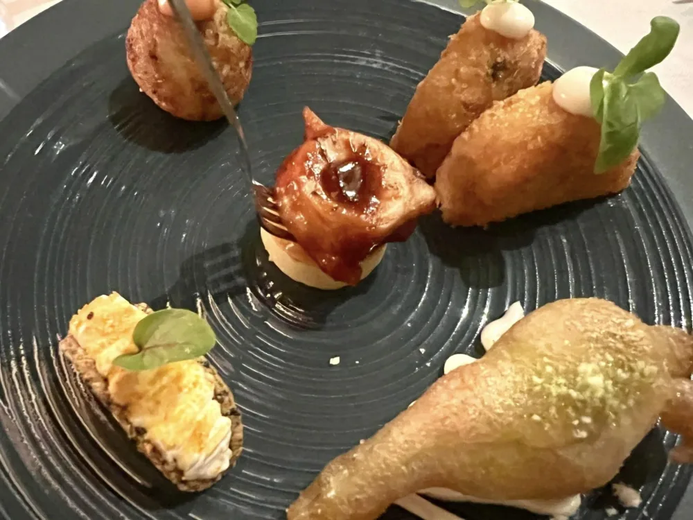 Salone Eva, sfizi iniziali, con frittatina napoletana, polpetta e carciofo fritto 7/12/2023 Torna a: Roma, Salone Eva all’Hotel Hassler e la cucina di Marcello Romano Salone Eva, sfizi iniziali, con frittatina napoletana, polpetta e carciofo fritto← PrecedenteSuccessiva →