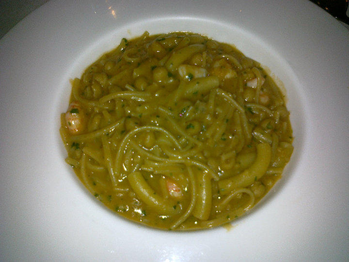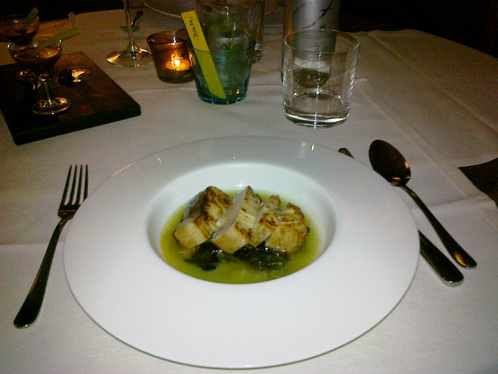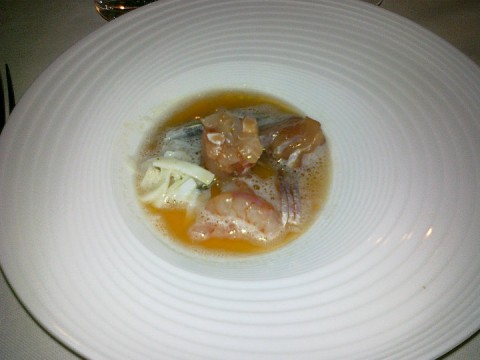 Cominciare con la zuppa di pesce crudo è infatti quasi indispensabile. Un’esperienza da non perdere. Sei diversi tipi di pesce, a seconda del pescato, serviti in acqua di pomodoro e schiuma di mare. Figuriamoci, «schiuma di mare», ho pensato con lo scetticismo di chi sul mare ha vissuto per vent’anni. E invece si sente davvero. Forte e inconfondibile ai sensi, molto più del pesce crudo. Il mare a morsi. Un piatto da dieci e lode.