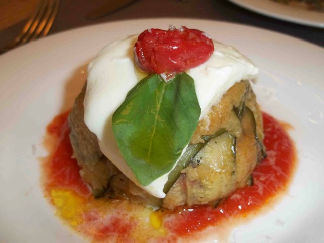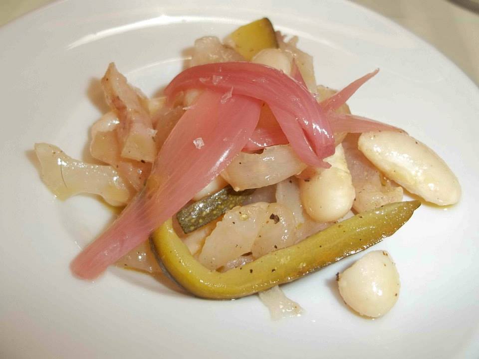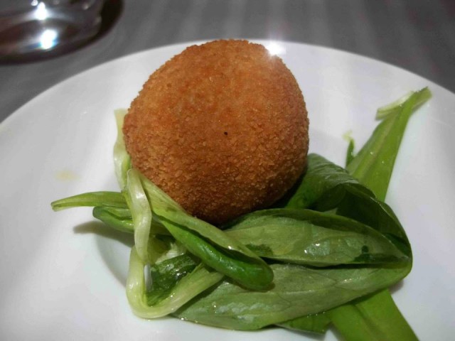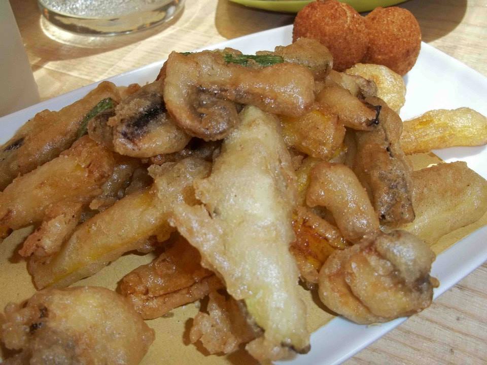 Due piccoli benvenuti dello chef, per cominciare: una stuzzicante insalata di nervetti con cannellini e cipolle all’agro, molto fresca e, soprattutto, indovinata come starter. E una polpettina fritta di ricotta ed erbette, croccante e delicata. La conferma di una buona mano nella frittura verrà poi con l’antipasto vegetale, ricco di verdure (e ricco anche nelle porzioni) e reso ancor più goloso da un supplì mignon.
