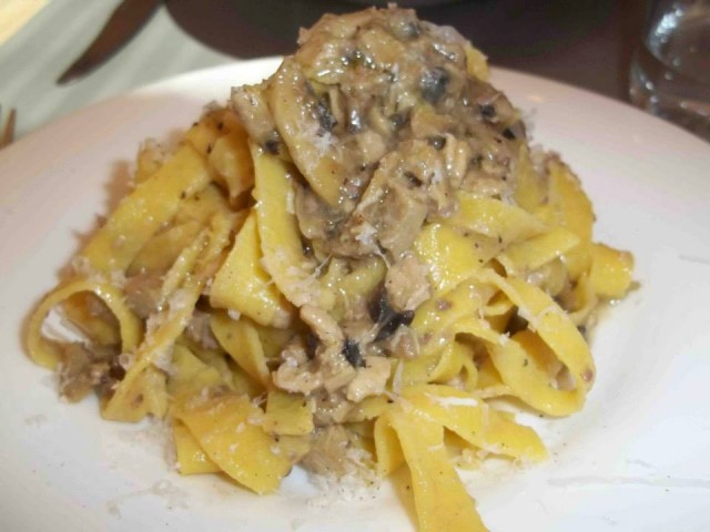Tra i primi piatti si va dai tradizionali ravioli di ricotta con pomodoro e basilico agli spaghetti con alici e finocchietto, ai più robusti gnocchi con sugo di castrato. Davvero gustose le fettuccine al ragù bianco di faraona, ben legate e mantecate, grazie ad una sfoglia porosa, consistente seppur leggera. E, soprattutto, tirata (e tagliata) a mano, cosa che regala un pizzico di commozione — almeno a chi ricorda le fettuccine di casa, sempre quasi tutte diverse tra loro.