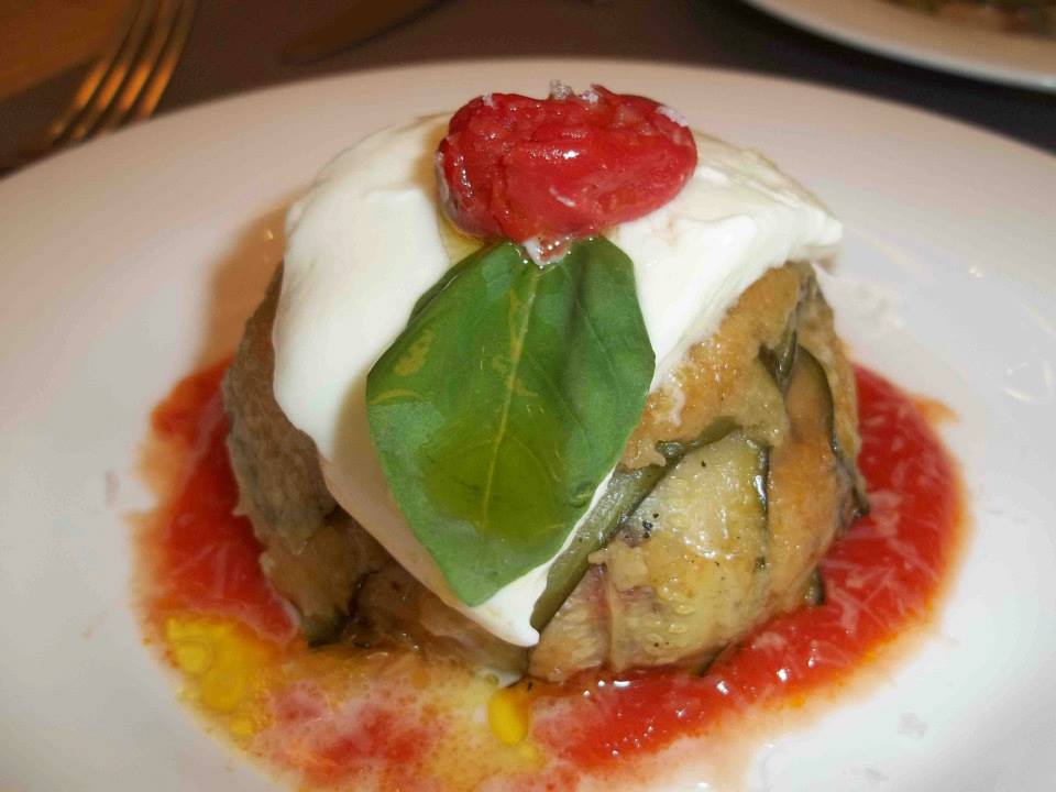 Delicata e convincente anche la parmigiana di zucchine, un po’ più robusta e saporita (oltre alla pancetta c’è anche il pecorino) la vignarola; mentre è ancora l’atmosfera casalinga che evocano le polpette alla cacciatora, semplici e confortevoli, con carne tenerissima e l’accenno inconfondibile di noce moscata.