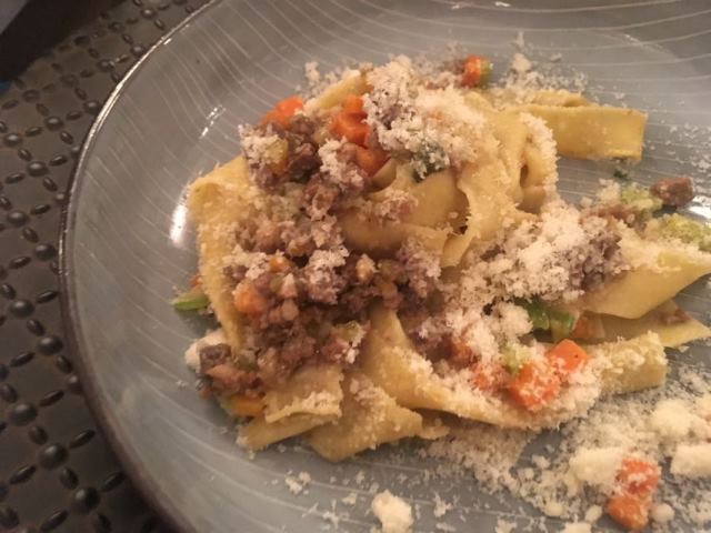 Tra i primi, semplici, ma gustosi gli Spaghettoni con pomodori del pendolo e pecorino(€12); profumatissimo anche il Maltagliato al profumo di rosmarino con triglie e zucca(€16). Tradizionali, ma di forte personalità i Vermicelli aglio, olio, alici di Cetara e mollica di pane(€12).