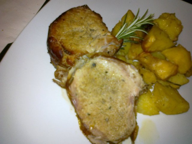 In compenso le patate al forno, come spesso succede, dallo stare in compagnia con carni saporite e ben aromatizzate guadagnano in sapore e sapidità, farinose il giusto e non bruciate.