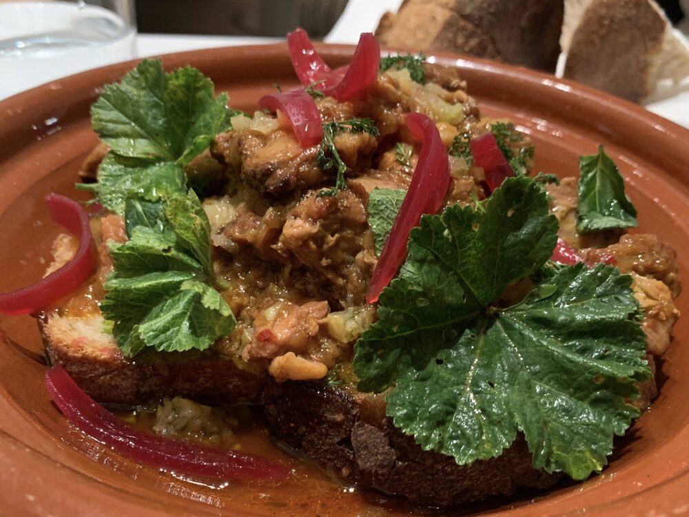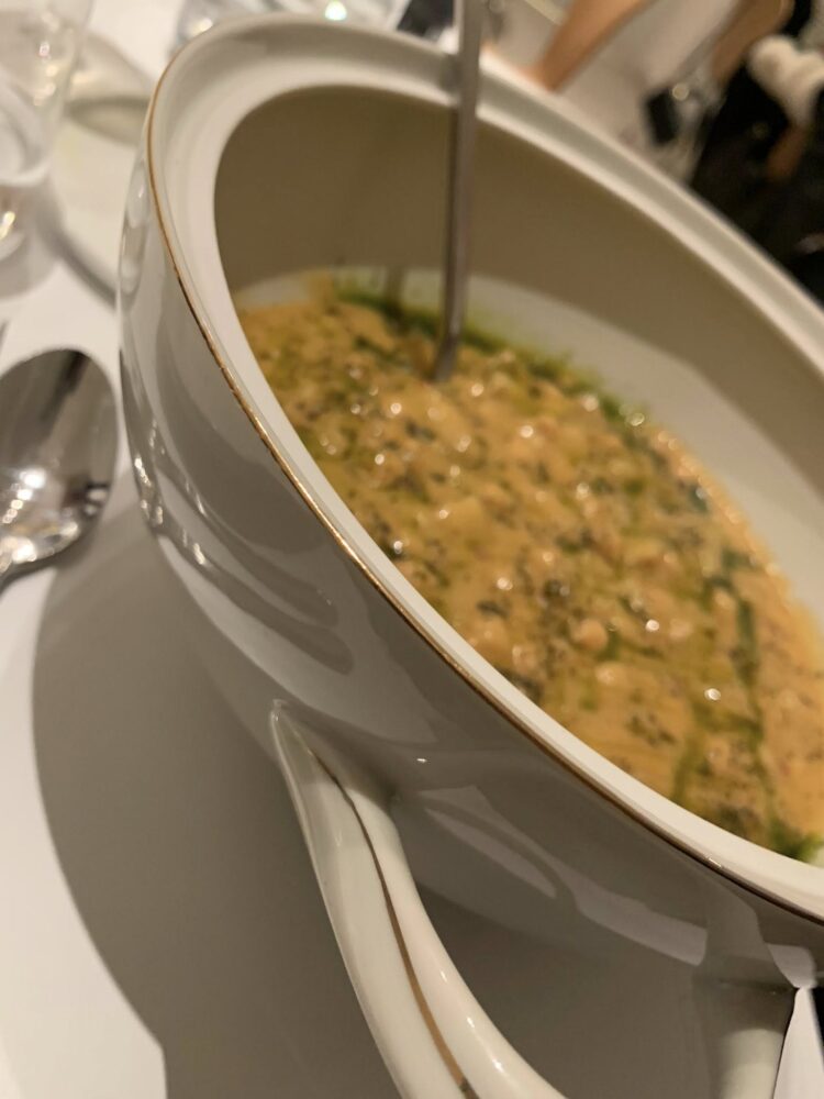 E poi si condivide la zuppa di ceci e crostacei, in grande equilibrio tra legumi e mare, con le pannocchie a dare la giusta spinta sapida e il piccantino che fa spazio al bis.