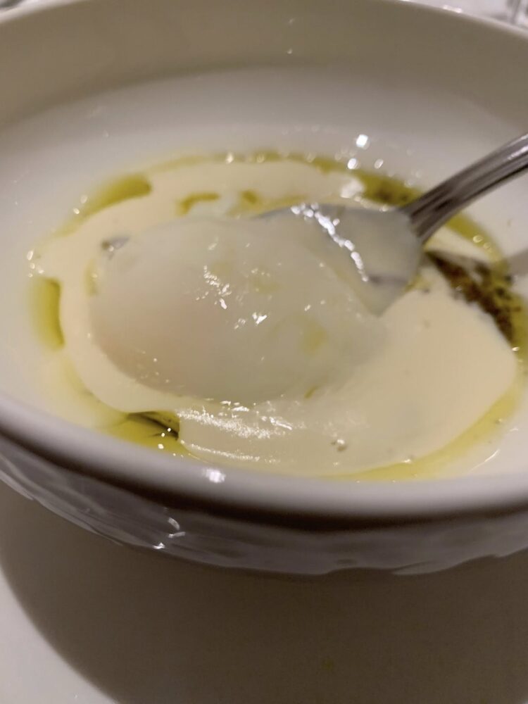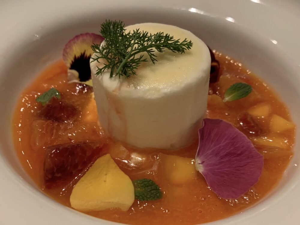 Anche la chiusura dolce non ha nulla di improvvisato. Si può scegliere tra una cheesecake a base di ricotta con composta di arance amare (porzione generosissima, forse troppo); il pain perdu, dolce d’antan che consigliamo fortemente oppure un parfait allo zenzero rinfrescato da una zuppetta di frutta di stagione.