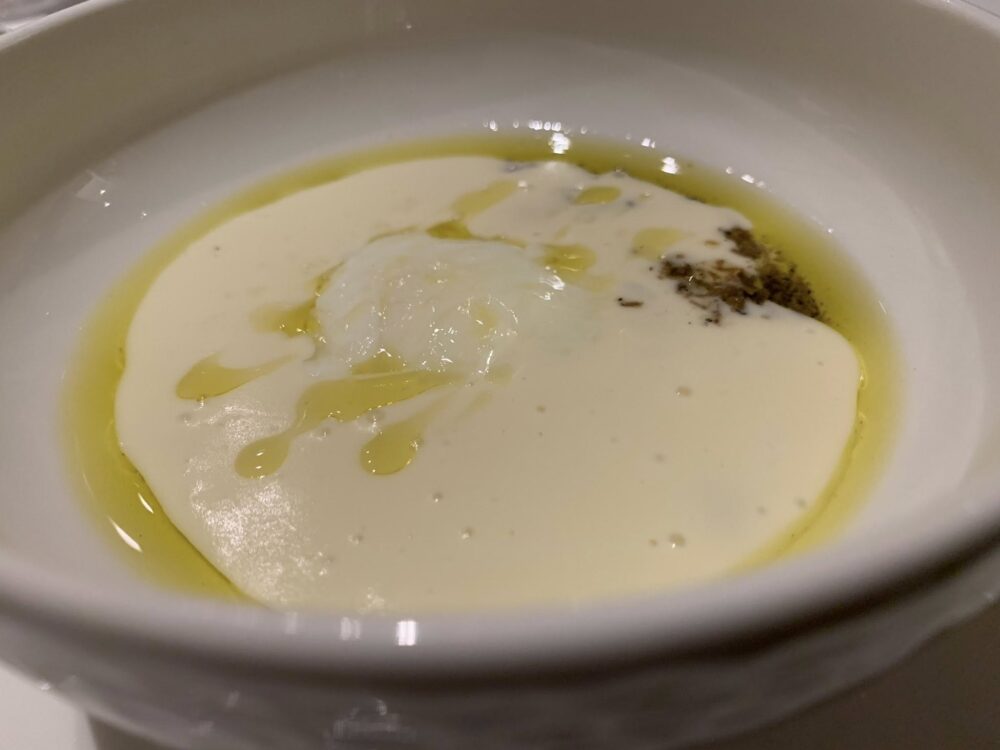 In attesa della cena il tempo si inganna con del pane condito con extravergine e salsa di soia, mentre si sceglie il vino da una carta piccola ma ragionata, volendo anche al calice.