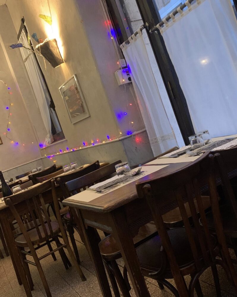 Sembra infatti di entrare in un bistrot anni Quaranta, a partire dal legno scuro e dalla foggia di tavoli e sedie da osteria. All’ingresso un bancone per la mescita vecchio stile con le rifiniture cromate e le etichette quasi prevalentemente nazionali – selezionate con cura e curiosità da Fabiola Di Vittorio che con la sorella Anna e la madre Rosanna hanno aperto questa osteria poco più di venti anni fa.
