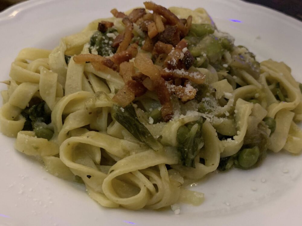 Non perdete allora le sue alici fritte, leggere come l’aria; oppure i peperoni mbuttunati saporiti e golosi, che tirano la giacchetta all’estate. Le ricette di carne e di pesce non mancano, ma sono i contorni, e le verdure e gli ortaggi che accompagnano tutti piatti, la vera ricchezza di Tram Tram. E dunque come rinunciare alle fettuccine con la Vignarola?