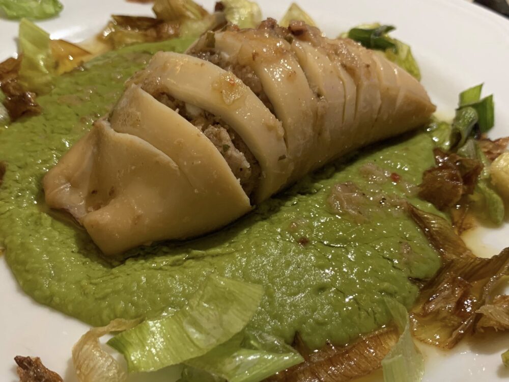 L’accoppiata classica ‘baccalà e ceci’ è solo un po’ ‘ingentilita’ nella presentazione, con il primo mantecato e i legumi in crema; molto buono anche il calamaro imbottito. Il pane si lascia mangiare che è un piacere (che bello quando in trattoria non si trascura scelta e qualità del pane!).