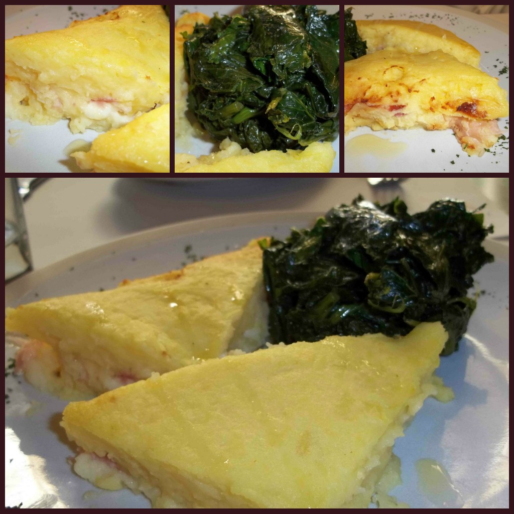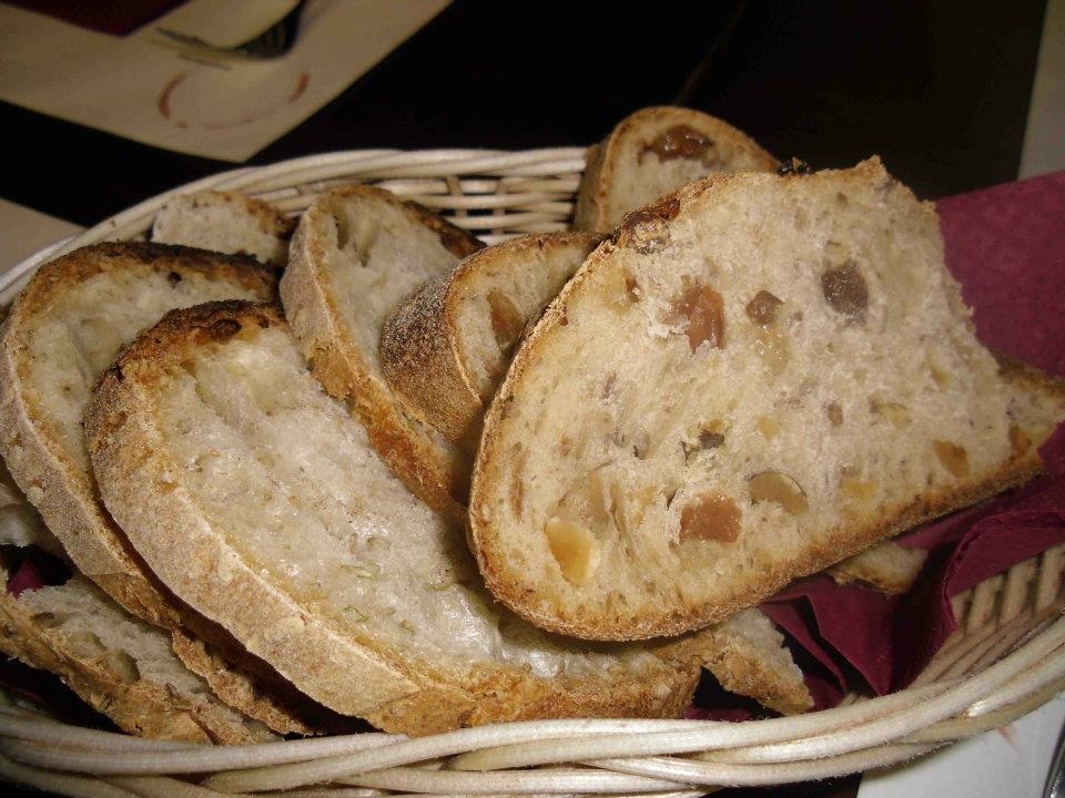 Tra le altre proposte: flan di cipolle rosse con fonduta di piacentinu; tartare di tonno con cavolo viola e aceto balsamico; minestra di lenticchie e calamari; wurstel di Merano con verza e broccolo romano; baccalà mantecato e panelle. Il pane, semi-integrale a pasta acida a lievitazione naturale del forno bio “Il Sambuco”, è una bella sorpresa; ottimo quello con noci e uvetta (attenzione: viene servito su richiesta, a tre euro e cinquanta).