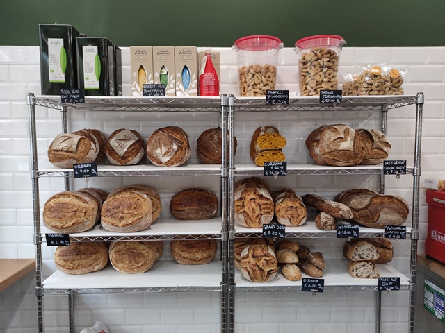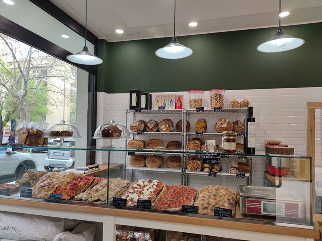 Dietro al bancone i clienti possono acquistare alcuni tipi di pane: il bianco, un “urbano” (un’alternativa al pane di campagna, un tipo di multicereale fatto con mix di farine, come farro integrale, monococco, segale bianca, segale integrale, grano duro e una base di grano tenero), il grano duro con semola di grano duro del Mulino Marino, i pani di farro e di segale in purezza, la ciriola bianca, integrale e qualche ciabattina.