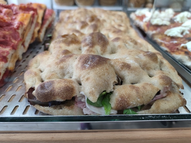 La pizza in vendita è quella classica da forno: bianca, rossa, con patate, con la cipolla e quella farcita, ad esempio, con la mortadella. Si producono anche due tipi di focacce: genovese e pugliese. Sono presenti, infine, i grandi lievitati della tradizione: il panettone a Natale e il tortano e la colomba a Pasqua.