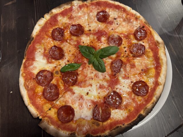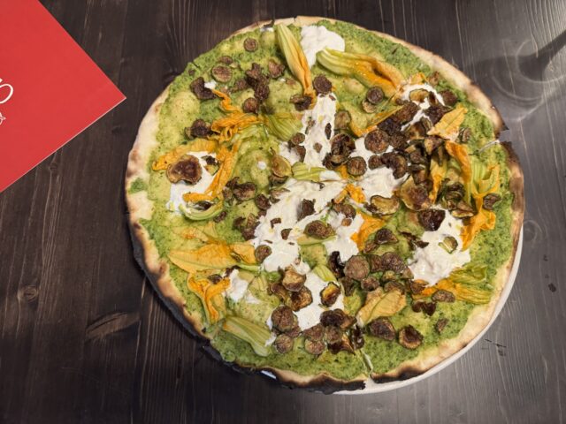 La pizza segue la stessa filosofia: rispetto della tradizione e attenzione alla qualità. Il disco è sottile, croccante, steso a mattarello e cotto nel forno a legna. Un omaggio alla pizza romana più autentica, con impasto firmato da Daniele Di Grazia, pizzaiolo di terza generazione che cura anche il cestino del pane di Romeo.
