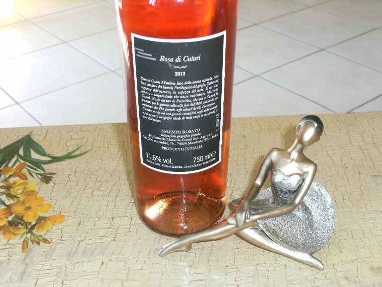 Voglia di un vinello giovane, allegro, fragrante e poco alcolico, magari un rosato che “…non ha il candore del bianco, l’ambiguità del grigio, l’intensità sognante dell’azzurro e la cupezza del nero”, come si legge sulla controetichetta del Rosa di Cuturi Salento Rosato Igp 2012 di Masseria Cuturi, che ho recentemente degustato.