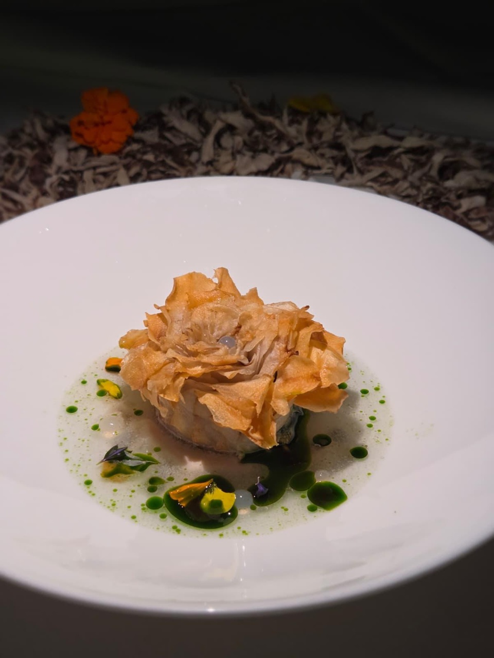 Il piatto nasce dal desiderio di Marco di proiettare un grande classico della tradizione italiana, il carciofo alla Giudia, in una dimensione futura, più essenziale e contemporanea. L’idea è quella di preservarne l’anima, ma raccontarla attraverso un nuovo ingrediente e un nuovo linguaggio.