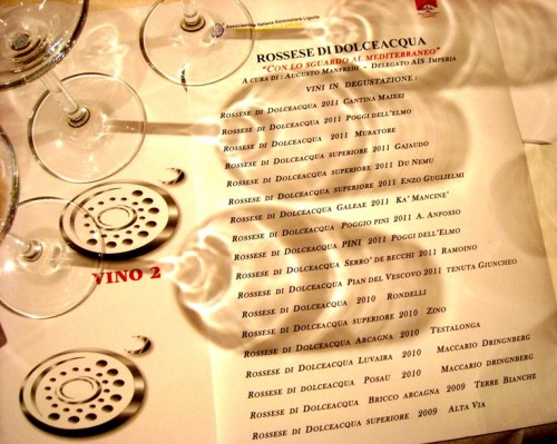 Probabilmente non di Dolceacqua, che si prende tutto il vento freddo che scende dritto fino al mare: sul Nervia si fanno vini fini, profumati per via dell’ossigeno dei rimontaggi, talvolta un po’ seduti come di chi ha dato tutto. Più facilmente sarà di Perinaldo o San Biagio, che sono a ridosso, riparati dal monte, così che il vento del mare può arrivare con tutto il suo sale, con tutta la macchia che ha trascinato con sé. Ne escono vini per niente indulgenti, dritti e intriganti, contagiosi: ecco, quella specie di maccaia salata che ti prende in quei pomeriggi, un filo di sudore che imperla le labbra di lei.
