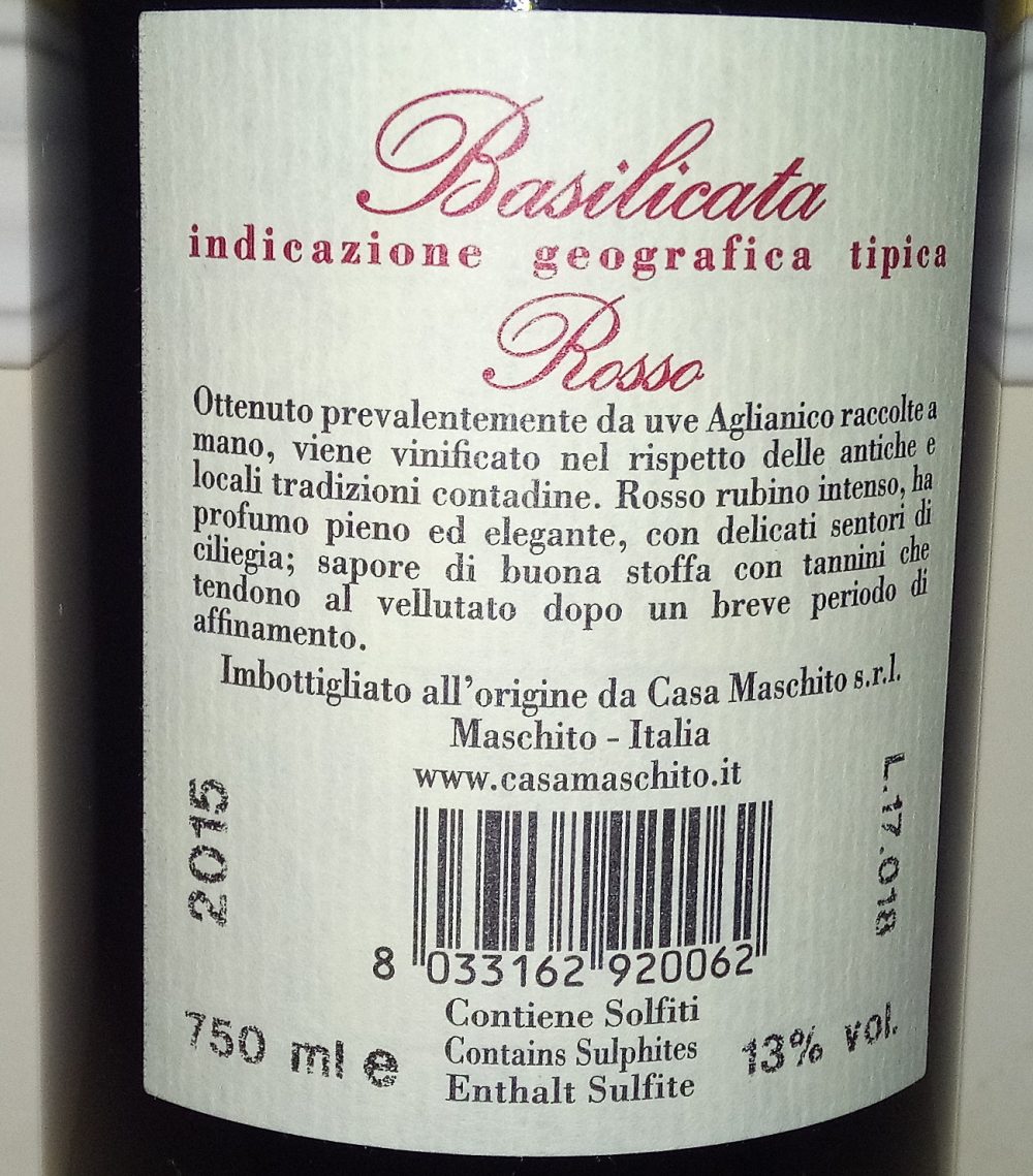 Controetichetta Rosso Basilicata Igt Casa Maschito