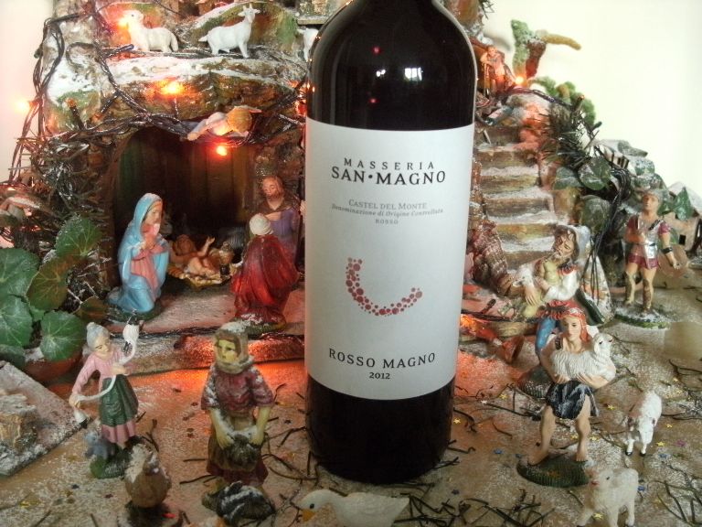 Ecco qui un altro esempio ampelografico alternativo sul territorio pugliese, con la confezione di un blend che prevede l’impiego di vitigni non soltanto autoctoni. Ce lo propone l’Azienda Masseria San Magno di Corato, nel Barese (appartenente al gruppo Agricola del Sole), con il Rosso Magno Castel del Monte Doc 2012 frutto di un assemblaggio eterogeneo, che insieme al locale e prevalente nero di Troia mischia anche lo stanziale montepulciano e l’internazionale cabernet sauvignon. Una sorta di Cacc’e mmitte lucerino.
