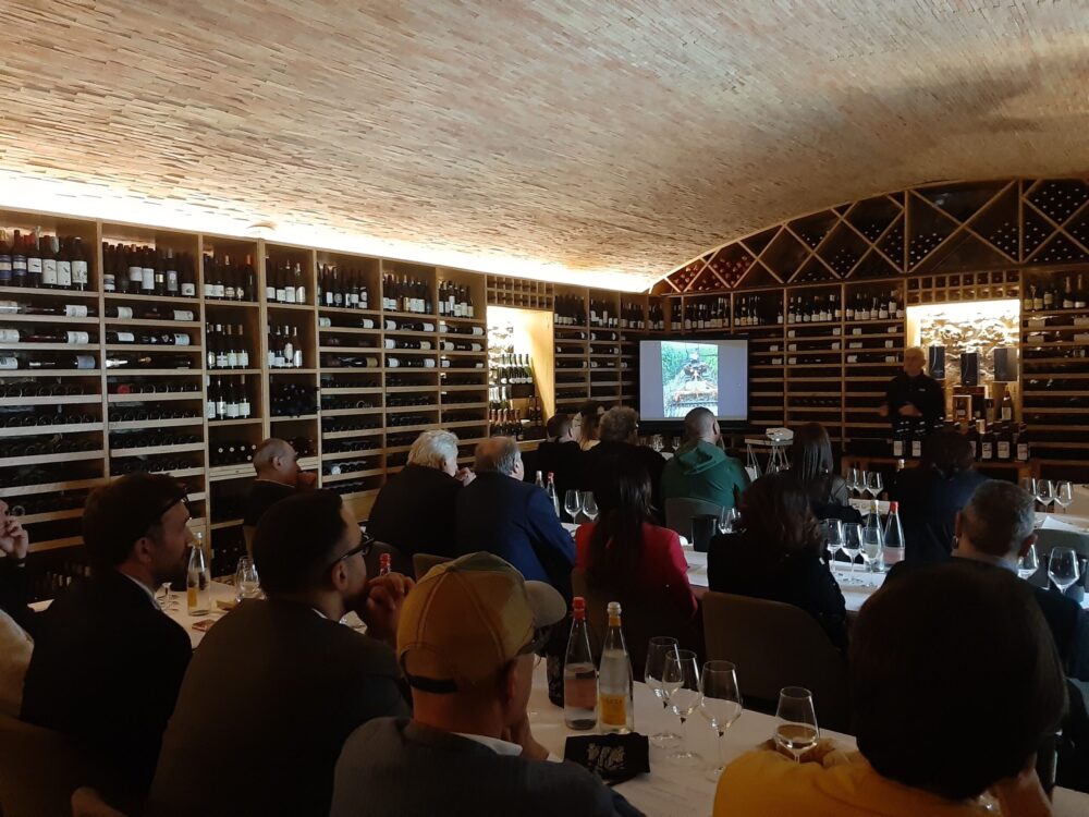 A lui le considerazioni iniziali prima della degustazione: «L’idea che i giovani non bevano vino è fuori luogo se consideriamo il numero crescente di enoteche e wine bar. Il vino va raccontato, così come le annate che possono essere gestite anche nei momenti più difficili, optando la selezione di qualità in vigna. Avevo iniziato 40 anni fa con oltre 4 kg di uva per pianta e pochi ceppi per ettaro; adesso ne ho migliaia che producono a malapena 1 kg di media e, per alcuni cloni, anche meno di 200 grammi. Con produzioni così ridotte non c’è avversione del clima che tenga, ma ovviamente aumentano i costi di produzione».