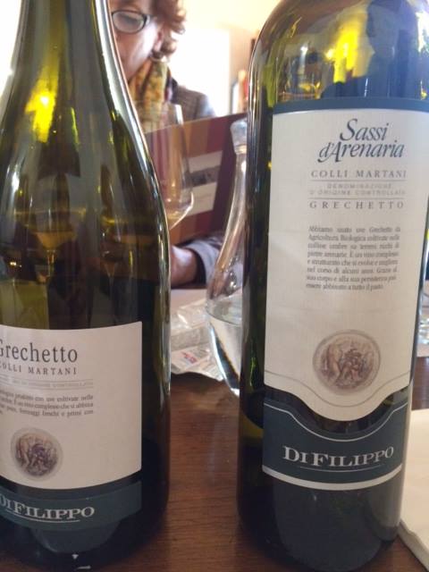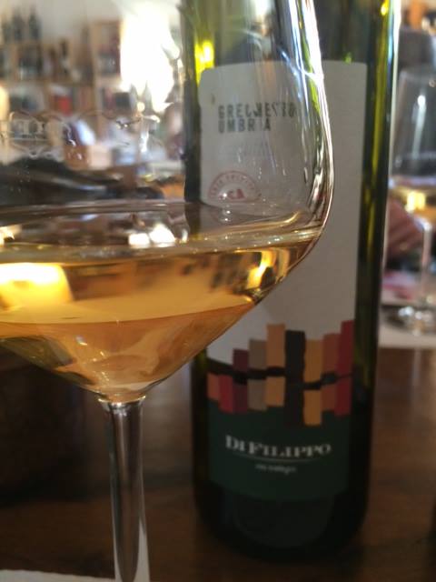 Il Grechetto è un vitigno difficile che produce un’uva carica di colore facile ad ossidarsi. L’Az. Di Filippo impiega solo acciaio per il Grechetto 2014 14,5% vol dall’aspetto oro antico, naso che ricorda il miele di castagno e le susine gialle surmature; in bocca freschezza e sapidità lunga rinverdita dal sapore di frutta percepito al naso.