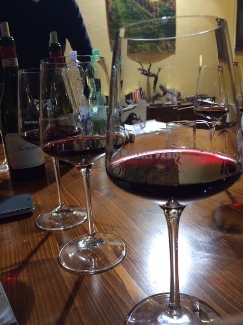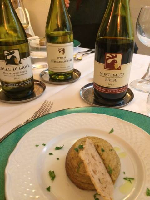 I Fratelli Pardi si occupano anche di vino dalla fine dell’ottocento, dimostrandosi moderni custodi di una tradizione molto antica. Colle di Giove Montefalco bianco( 60% grechetto,25% trebbiano spoletino e 15% chardonnay) 2015 14% vol ha un naso minerale con refoli di biancospino con un buon equilibrio fresco-sapido. Il Grechetto 2015 in purezza profuma di uva spina, caprifoglio e gelsomino ed è intenso e verticale. Del Trebbiano 13% vol. che fa solo acciaio si assaggia la 2011, la 2012 e la 2015. L’annata 2011 ha una veste dorata trasparente e brillante, suoi sono sentori di frutta secca, nocciole, fresca crosta di pane con ricordi fumé ed empireumatici; in bocca permangono sensazioni più fruttate e fresche che sorprendono. La 2012 fa intuire al naso lo stesso profilo di nocciola e fumé mentre la bocca è più minerale e quasi stuzzicante; la 2015 ha un profilo fruttato di susina e mela. Il Sagrantino 2011 15,5% vol dal colore rosso rubino intenso ha un naso che ricorda l’arancia e le spezie, il tabacco, le mandorle. In bocca astringe con evidenza ma con eleganza, nessuna percezione alcolica mentre sembra quasi di assaporare lungamente una ciliegia sottospirito. Del Sacrantimun 15,5% vol gustiamo una piccola verticale. La 2008 dal colore rubino intenso e fitto rimanda al cioccolatino boero ripieno di ciliegia, sensazioni vegetali di alloro e medicinale. In bocca tannino fittissimo che permea lingua, denti e palato. Il Sacrantinum 2010 è fine al naso con sentori di buccia di arance e pot-pourry floreale, equilibrato all’assaggio, frutto di un’annata felice. La 2011 mostra note di incenso e frutta, particolari e gradevoli; in bocca è un frutto dolce e il tannino non è così aggressivo. Accostati a piatti esotici come tempura di gamberoni, tartare di tonno con germogli di crescione e barbabietola, costine di agnello al lime tutti questi vini sono apparsi perfetti partners di una cucina più leggera e moderna, assolutamente da provare.