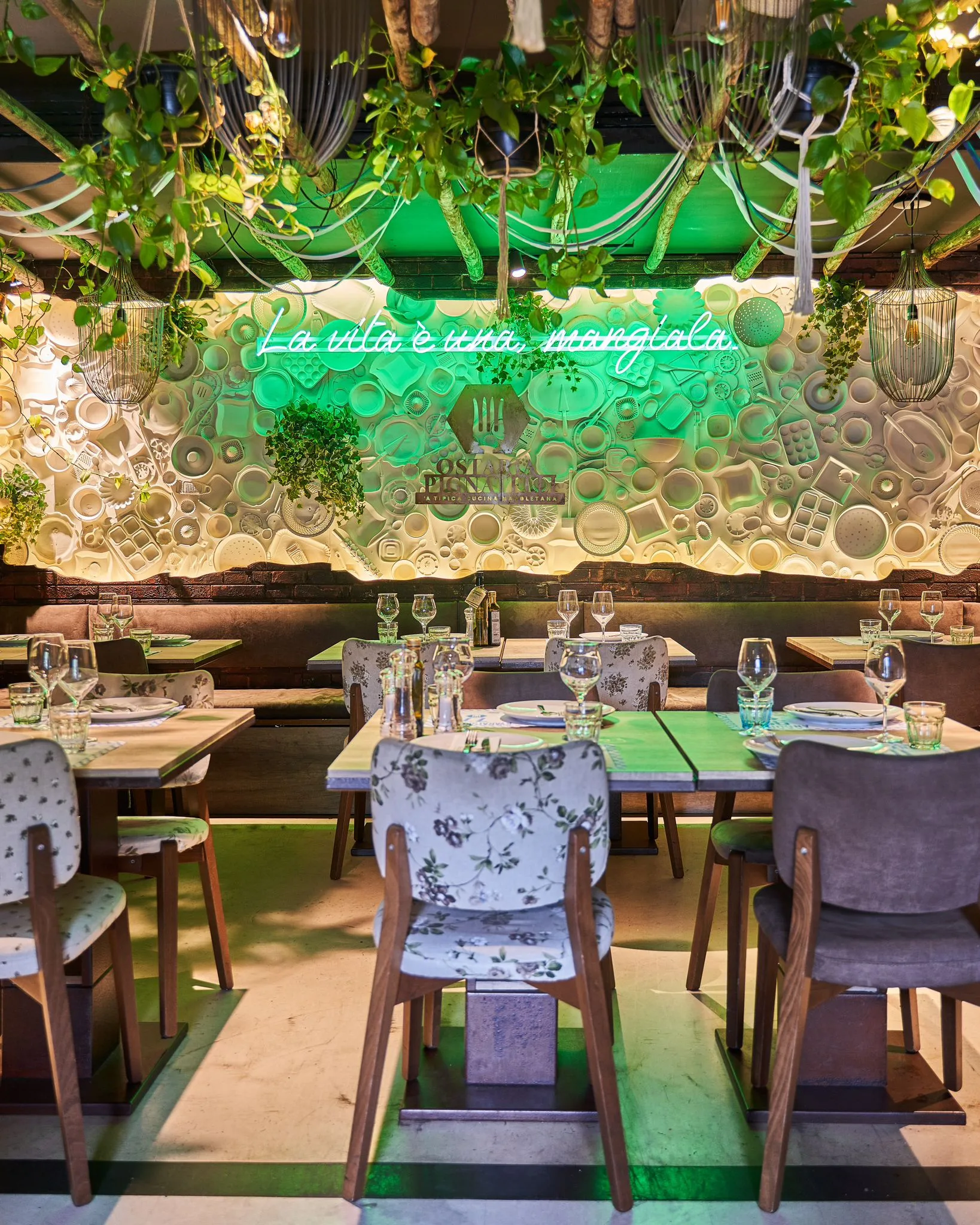 Ostaria Pignatelli, al 216 della Riviera di Chiaia, si trova a poche decine di metri da Villa Pignatelli, dimora degli Aragona Pignatelli dal 1897 al 1955 quando, con la morte e per volontà della Principessa, nata Fici dei Duchi di Amalfi, fu donata allo Stato italiano perché venisse trasformata in appartamento-museo.
