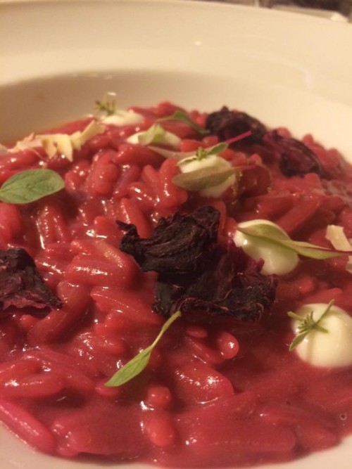 Tra i primi piatti, un vero e proprio gioco con la pasta ‘riso’ (così si chiama il formato da minestra di Giuseppe Di Martino) cotta davvero come un risotto alla rapa rossa e panna acida, con ragù bianco di pescatrice. Ricetta golosa, andrebbe solo rinforzata sul versante acidità, magari con un po’ di agrumato.