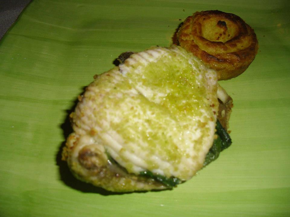 Un pesce povero, ma che se ben trattato sa riservare sempre piacevoli sorprese al gusto è la razza, o raja come la chiamano in zona. Qui in versione millefoglia, nel senso che tra due strati di pesce profumati al limone trovate una verdura croccante (spinaci, nel nostro caso) accompagnata da un piccolo tortino di patate al forno, anche questo rinfrescato dagli agrumi. Un piatto delicato ma di carattere.
