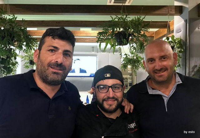 Pizzeria Capri il pizzaiolo Alfonso Saviello con i proprietari Umberto Scermino ed Emilio Signorelli
