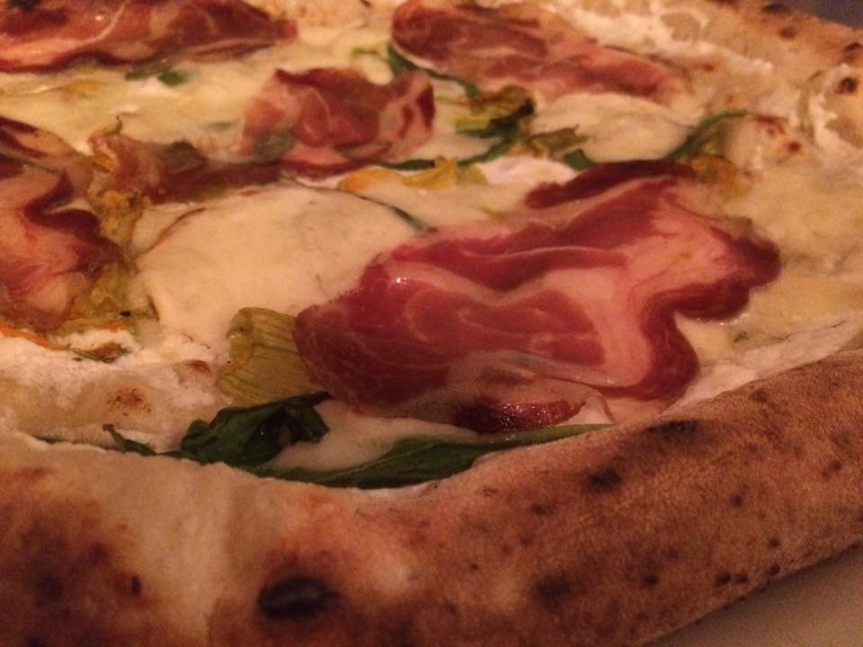 La base è sottile, morbide e scioglievole, come scuola napoletana insegna, e il cornicione della giusta misura: ben lievitato e non eccessivamente grande, si lascia mangiare con gusto. Nel complesso, una pizza di grande levità, lievitata perfettamente e cotta senza bruciature fastidiose; e, nota di merito, che ha retto benissimo alla prova del pericolo sete notturna.