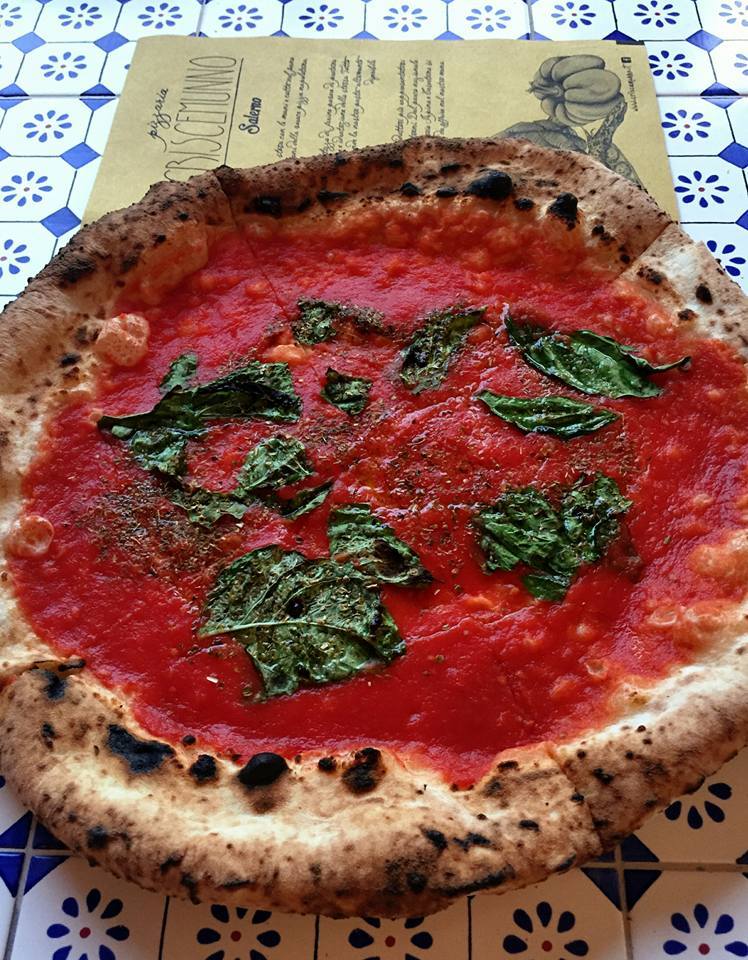 Il menu presenta circa una ventina di pizze, che vanno dalle classiche, intramontabili, come margherita e marinara, fino a quelle più creative, come la “Cucurbita” sia in versione irpina (con un capocollo di Venticano davvero ottimo) oppure in versione Costiera, con i fiori di zucca e alici di Cetara: entrambe con una base di fior dilatte, provola e ricotta. Molto buona anche la “Pisciottana”, con alici di menaica del Cilento e pomodorini gialli; i sapori sono tutti distinguibili e ben bilanciati. Perfetta per chi ama le ‘rosse’tradizionali quella con le melanzane a funghetto; di carattere la pizza’aprilatica’ con i broccoli di Paternopoli, presidio Slow Food.
