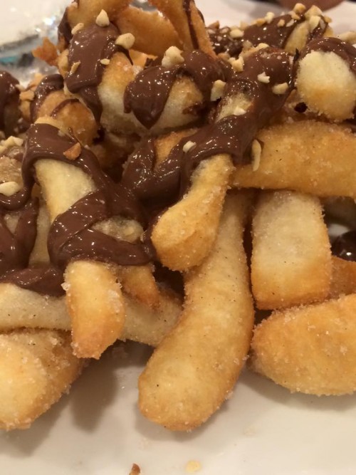 Per chiudere in dolcezza, angioletti di pasta fritta guarniti di cioccolata e (come poteva mancare?) la mitica graffa (zeppola) napoletana. Ovviamente preparata al momento e servita caldissima. Imperdibile.