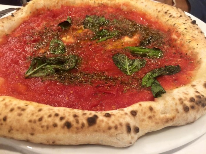 Il menu sintetizza molto bene la tradizione partenopea, sia per quanto concerne la scelta delle pizze classiche, sia sul fronte del paradiso dei fritti: dai crocche’ di patate agli arancini, dai fiori di zucca ripieni di ricotta e acciughe agli ‘scagliozzi’ (triangoli di polenta, una volta il vero cibo povero di strada a Napoli), fino alle mitiche frittatine di pasta. La frittura – tanto più godibile perché fatta rigorosamente al momento – è davvero ben eseguita, leggera, non eccessivamente unta, fragrante. Un piatto di misti da solo vale la cena, quindi il consiglio è di non esagerare e lasciare un po’ di spazio alla degustazione delle pizze.