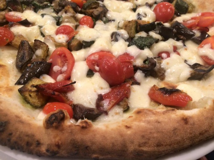 Ma veniamo alla pizza. La tipologia è quella napoletana, cornicione importante con il condimento che l’ammorbidisce al centro, pasta elastica e ben lievitata con la «prova del nove» perfettamente riuscita: alta digeribilità (sentirete subito di aver mangiato una pizza ‘leggera’) e notte senza bisogno di bere.
