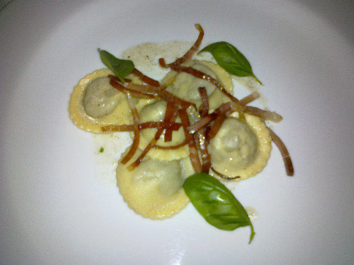 ravioli di stracotto conditi con cacio e pepe e speck 26/9/2010 Torna a: Salerno, ristorante Il Ristoro degli Angeli. Genio e regolatezza del giovane Marco De Luca ravioli di stracotto conditi con cacio e pepe e speck← PrecedenteSuccessiva →