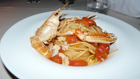 La carta è scarna e priva di un menu degustazione. Tra i primi abbiamo provato i paccheri setaro con totani, pomodorini e capperi e le linguine (fatte in casa) con scampi e pachino (una proposta del cortesissimo chef, venuto in soccorso di chi al tavolo non poteva mangiare molluschi).