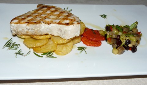 Tra i secondi abbiamo scelto, il pesce spada grigliato (servito con le patate al rosmarino) e un trancio di ricciola servito con una straordinaria caponatina, purtroppo arrivata al tavolo senza la ricotta salata-affumicata prevista dal menù. Abbiamo fatto notare la mancanza e l’errore è stato corretto, con le scuse dello chef – a rendere giustizia ad un piatto che così conquista più carattere.