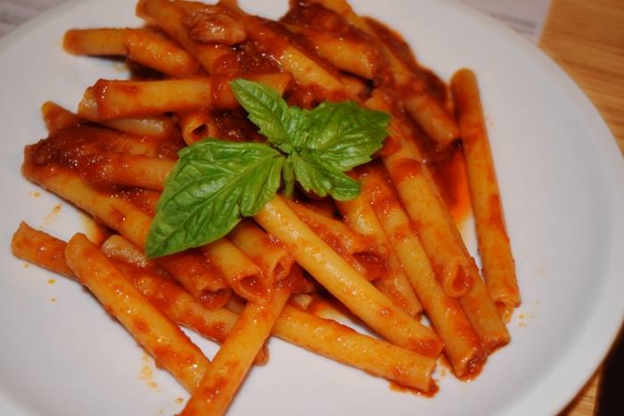 Il concetto base è molto semplice: ricette tradizionali realizzate seguendo il motto “così si fa”, l’idea è quella di recuperare la memoria di un territorio. Appena si entra, in bella vista subito vi ritrovate il banco della salumeria: i salumi prediletti quelli con carne di maialino nero casertano, per la selezione di formaggi si prediligono quelli campani, nella fattispecie casertani ed irpini. La mozzarella di bufala è del Caseificio Costanzo di Lusciano. I battenti si aprono già alle dieci del mattino, perché Upnea offre la possibilità di fare colazione con i dolci di loro produzione, tra cui campeggia trionfante la Polacca, dolce tipico dell’Agro Aversano. Ma passiamo al clou della ristorazione: il ragù napoletano, secondo ricetta tradizionale, a cui a fine cottura viene aggiunta la salsiccia, viene servito nel “cozzetiello” di pane cafone oppure accompagnato dai classici ziti spezzati.