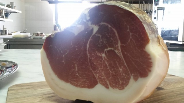 I maiali ci sono, una quarantina e sono pure belli pesanti, “almeno 200 kg” dice orgoglioso Dino, alimentati con ciò che viene coltivato in azienda (patate,cereali,frutta ecc) e con ghiande e castagne dei boschi vicini.