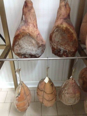 Nel piccolo ma attrezzato laboratorio, vengono realizzati ottimi capicolli, culatelli (qui chiamati prigiotti), pancette, sopressate, e la caratteristica sasicc de poc, ossia fatta con le parti meno nobili del suino. Su prenotazione è possibile anche avere la carne fresca dei suini allevati da Dino e Daniele, oltre a degustarla nella trattoria di famiglia, in tante preparazioni tradizionali come ad esempio la salsiccia sotto la cenere.
