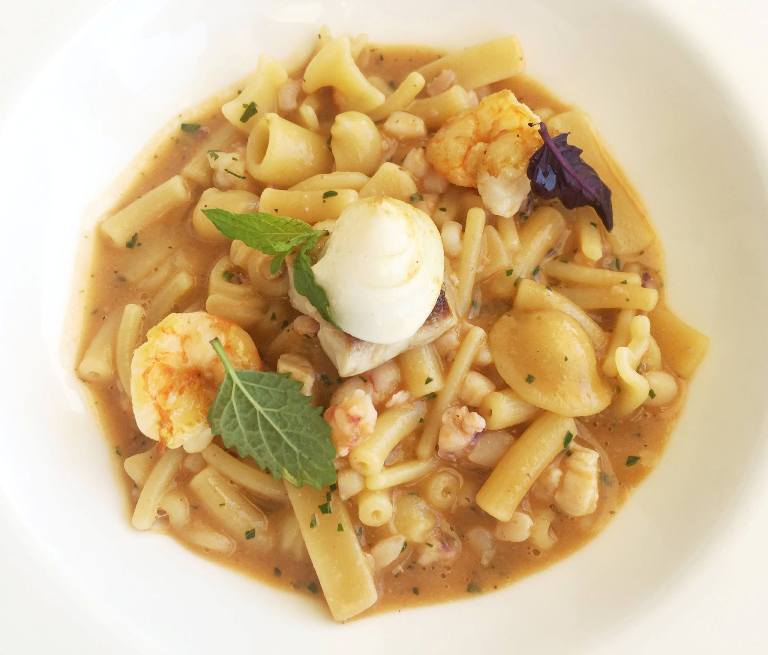 Mammà, minestra di pasta mista con crostacei e pesci di scoglio