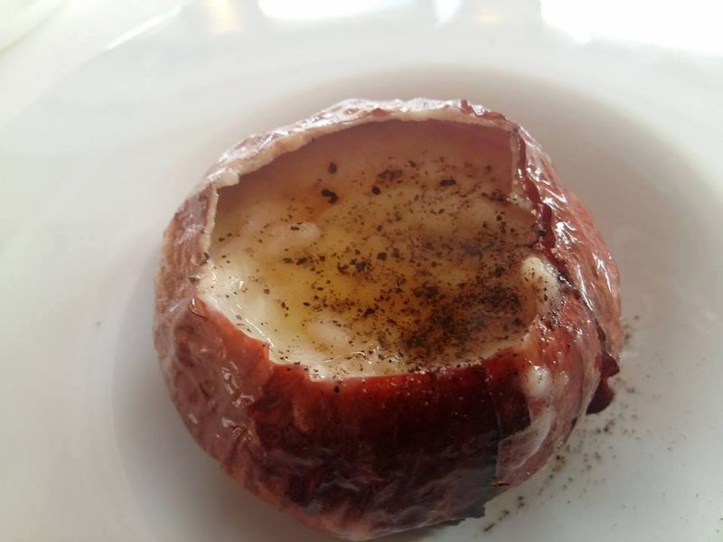 La cipolla fondente, piatto datato 1990. Nel 1990 andava per la maggiore l’anatra al torchio o il raviolo aperto, nell’alta ristorazione entrambi di Marchesi (grandi piatti), farfalle al salmone e penne alla vodka nelle ristorazione di massa. Non era passato ancora nell’immaginario collettivo il minimalismo gastronomico, non c’era stato ancora il ciclone Pierangelini. Pensare di servire al tavolo una cipolla, senza orpelli, senza sovrastrutture, meno densa della classica zuppa di cipolla con un gusto speziato e avvolgente, rende veramente l’idea di quanto avanti fosse questo cuoco.