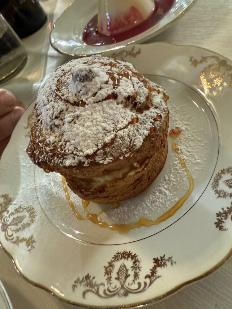 I dolci non sono la mia musica, così lascio che i miei commensali divorino panna cotta, zuppa inglese, cannolo e una sorta di panettone fritto che sparisce in un lampo. Ne registro solo la presenza, per dovere di cronaca🤣